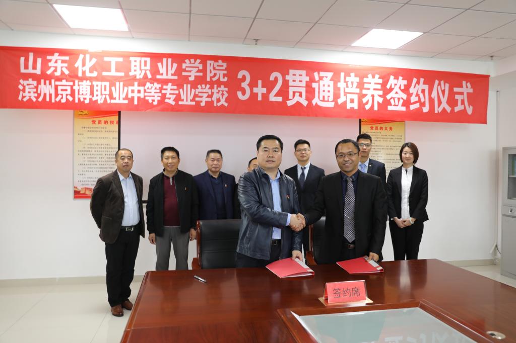 10月30日,山东化工职业学院与滨州京博职业中等职业学校举行3+2贯通培养签约仪式。山东化工职业学院纪委书记耿晓明、教务处处长冯喜成、招生就业处处长潘若方、党政办公室主任刘建伟、自动控制系主任范兴凯,滨州京博职业中等专业学校副校长孔祥令、教务处主任王叶召、办公室主任袁万万、教务处副主任宋霞参加了签约仪式。