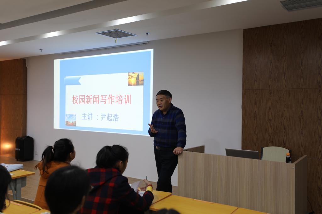 成立仪式结束后,尹部长亲自上课,为大家讲解《新闻与写作》专题,以自己从业多年的工作经历开始谈起,从独特的视角给大家启发了思路和灵感,开拓了视野,增长了知识。尹部长在讲课中向大家耐心的传授了很多写作中的技巧,指出了新闻写作中的一些误区和不规范的地方。大家聚精会神的听讲,非常珍惜这次难得的机会,纷纷表示受益匪浅。